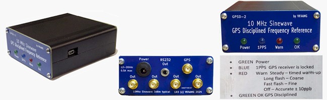 - Warn (Red) is lit steady during timed warm-up and flashes long during coarse discipline, then fast during fine discipline, and then goes out when accurate and stable ± 0.1Hz (± 10ppb);