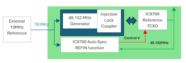Many IC9700 forums were reporting many injection locking modules were difficult to setup, both in their configuration software and in adjusting the IC9700 calibration / sync correctly. Many required a stable beacon or stable signal generator to adjust the sync function and test the operation of the injection locking.
